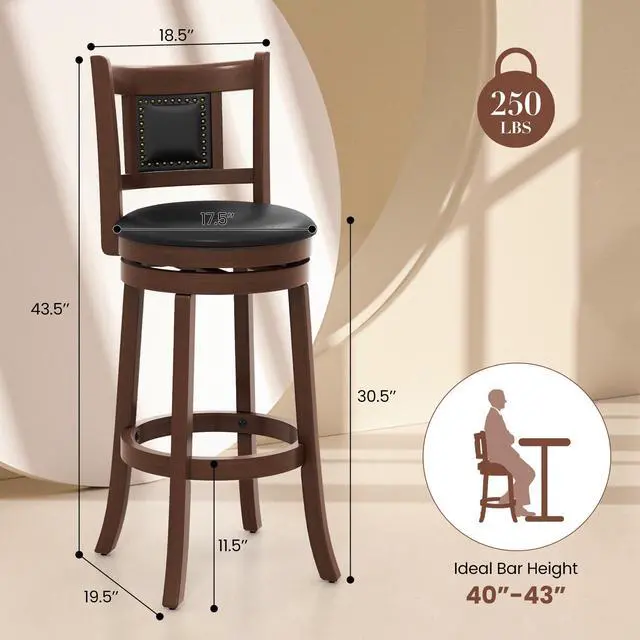 Elegant Vintage Appearance: The vintage swivel bar stools set comes with decorative rivets, and is a captivating addition to your home. Furthermore, it is applicable to pub, cafe, restaurant and other occasions to elevate the decoration style.
