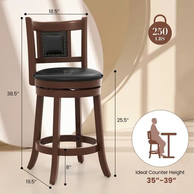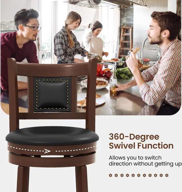 Elegant Vintage Appearance: The vintage swivel bar stools set comes with decorative rivets, and is a captivating addition to your home. Furthermore, it is applicable to pub, cafe, restaurant and other occasions to elevate the decoration style.