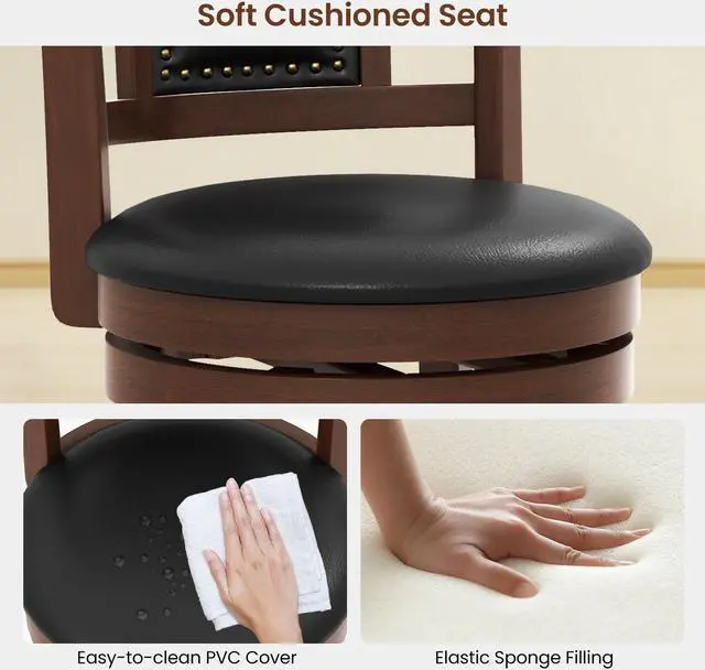 360° Swivel Padded Seat: Featuring 360° flexible swivel function, the upholstered stools set enables you to rotate the round seat freely to conveniently fetch items, and helps you complete face-to-face chatting. Besides, the padded seat is comfortable to sit.