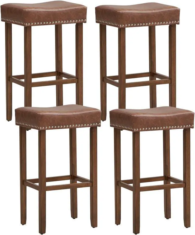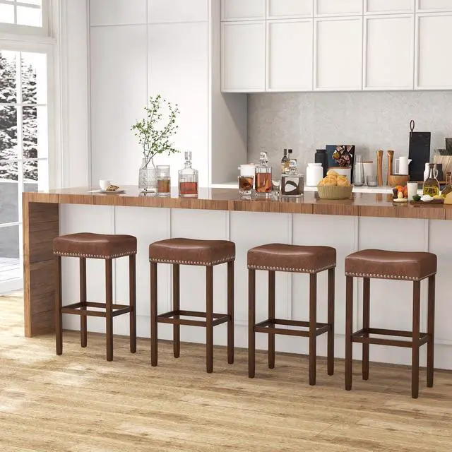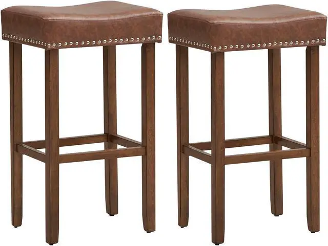 Stylish Design: Our bar stools blend vintage and natural charm. The PU leather looks very textured while the decorative rivets make the stools look stylish. There is no doubt that such quality furniture can be a great way to show off your personal taste.