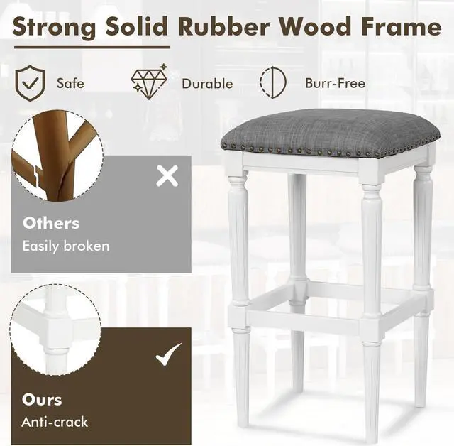 Rubber Wood Frame: Each kitchen island stool embraces exceptional sturdiness with a solid rubber wood frame, which also ensures a high load capacity of 330 lbs. Plus, it is fitted with triangle connections and adjustable foot pads to safeguard stability.