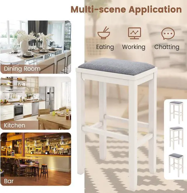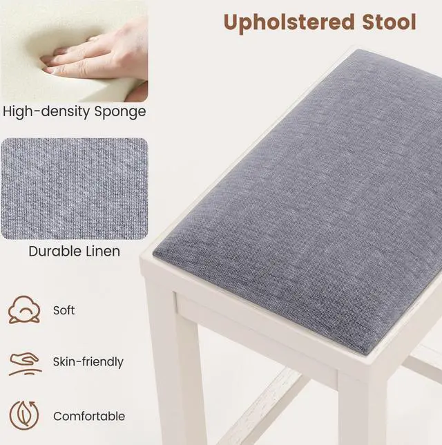 Upholstered Stool Set for Comfort: The bar height stools are upholstered in durable linen that combines skin-friendly touch and good softness. Besides, wrapped in high-density sponge, the kitchen chairs can bring you much comfort even sitting for a long period of time.