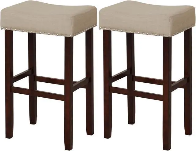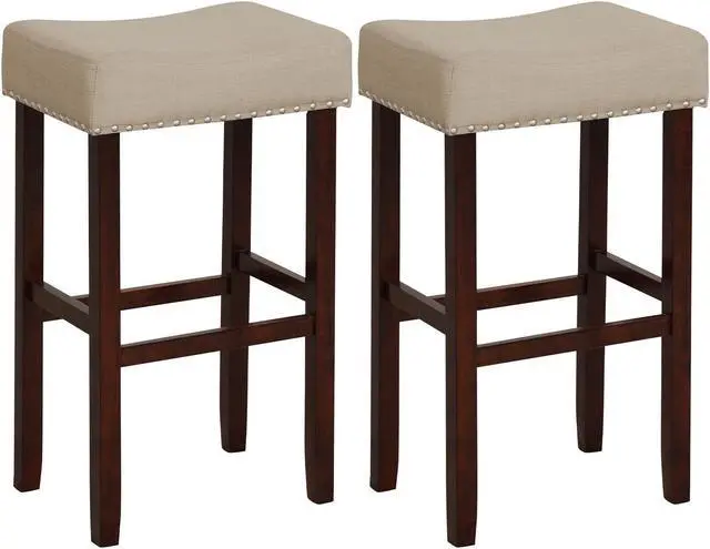 Retro Look and Clean Lines: This saddle stool set features retro look and brown wood frame, adding a unique style to your home. Additionally, the exquisite nail head trim design also increases the artistic sense of the stool, whether used for kitchen, dining room or bar.