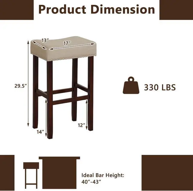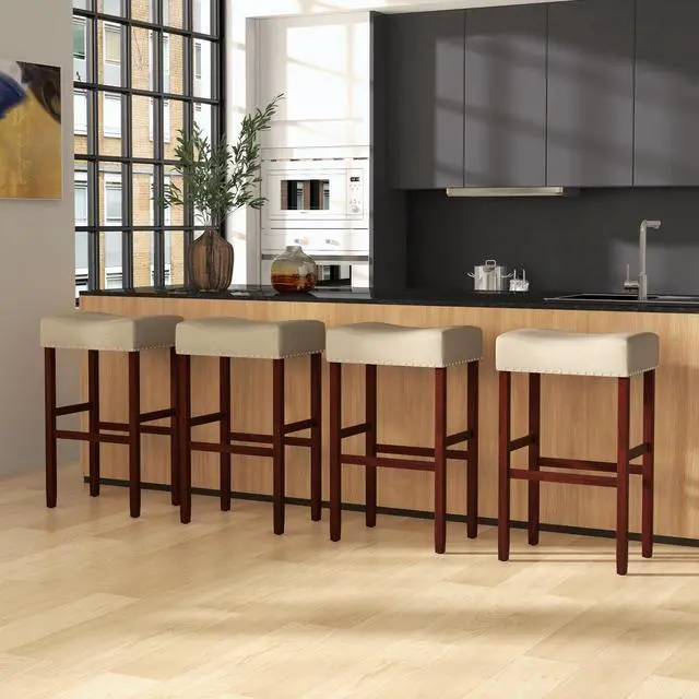Transformed Your Space: For diversified using needs, the 29.5" saddle stool set is compatible with 40"-43" counters or kitchen islands. For the purpose of saving space, the backless design make this stool set be stored under the table when not in use.