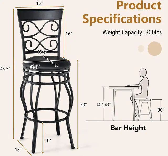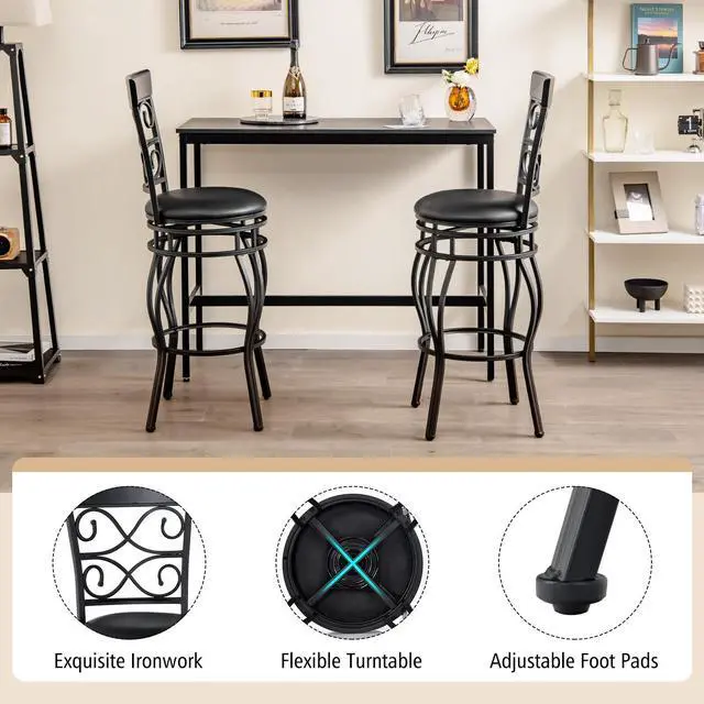 360° Swivel Bar Chair: These 2-piece bar chairs are equipped with flexible turntables. You can achieve a 360° free rotation while sitting. This is convenient for you to chat with your friends at any time, or to pick up items in front of and behind the bar.