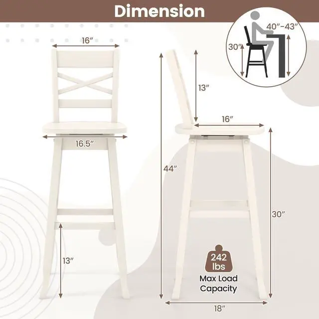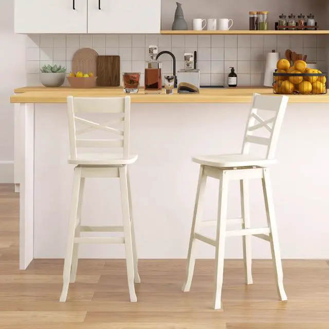 Rubber Wood Frame: Enjoy the outstanding sturdiness and stability that comes from natural rubber wood. Meanwhile, each bar stool contains additional crossbars, which work as added safeguards to reinforce the structure.