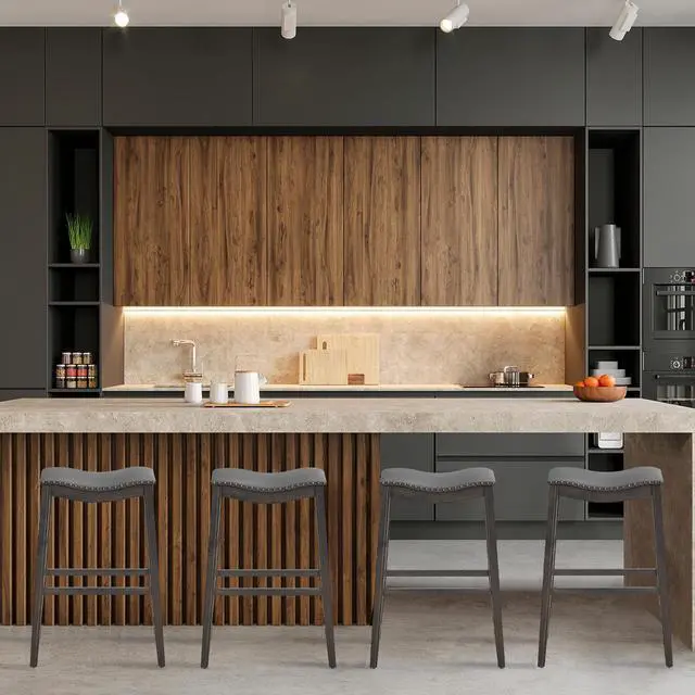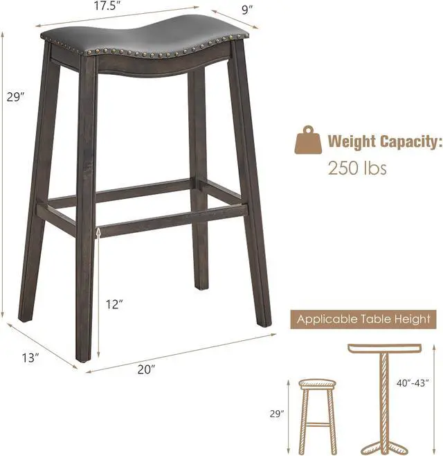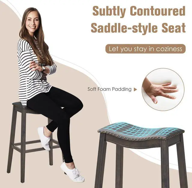 Ergonomic Saddle Stools: The backless bar stool features a saddle shape, which fits your body's curve well. With an appropriate height of 29", you can comfortably sit beside your kitchen island or bar table, and become more relaxed by placing your feet on the 4 footrests.