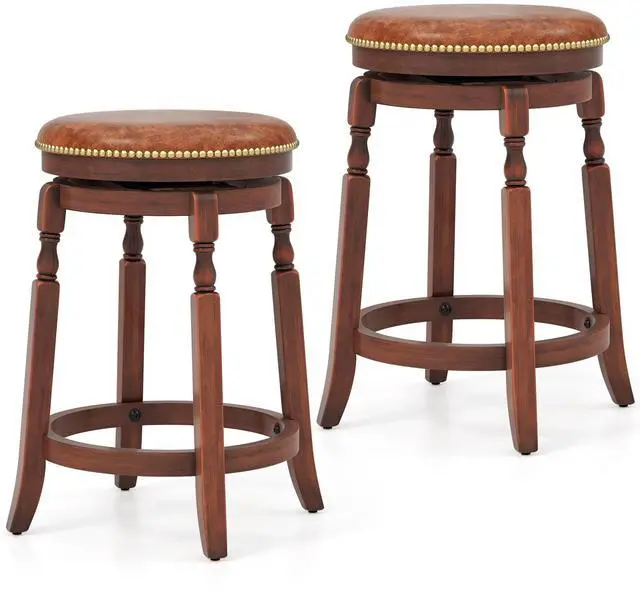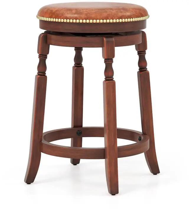 Timeless Vintage Design: Enhance the aesthetic appeal of your bar or kitchen island with this retro swivel bar stool. With walnut wood finish of frame and rivet decoration on seat, it effortlessly blends classic charm with modern functionality.