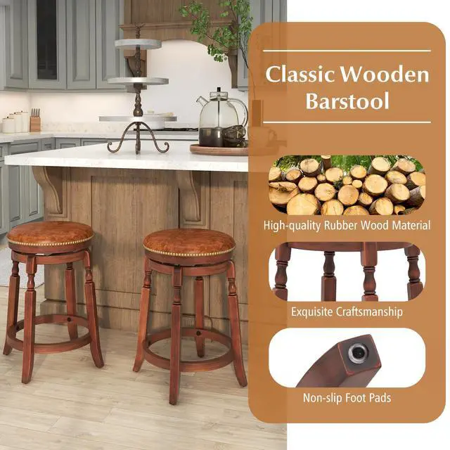 Built to Last: Constructed with high-quality rubber wood material, this swivel bar stool offers exceptional sturdiness and longevity, ensuring it remains a staple in your space for years to come. Plus, the non-slip foot pads add extra stability.