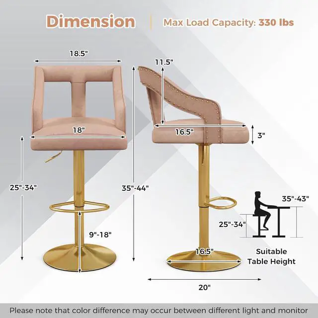 Reliable Metal Base: Undoubtedly, the 2-layer electroplated metal base shows ideal scratch resistance and can support a large weight of 330 lbs. Also, it has an anti-slip ring that will keep the bar chair stand stably while avoiding scratching the floor.