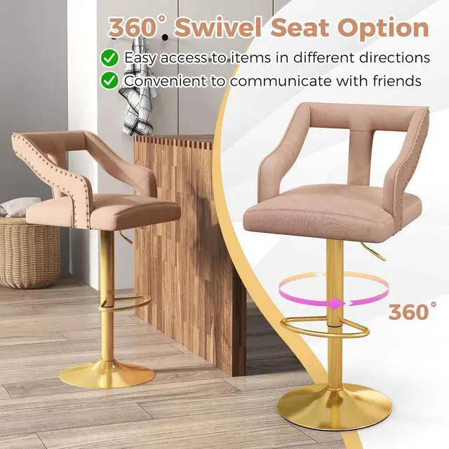 Stable Swivel Seat: Supported by a reinforced seat base, each bar chair allows for smooth and safe swivel features. Hence, it will give you the flexibility to easily interact with others or reach for items without needing to move the entire bar stool.