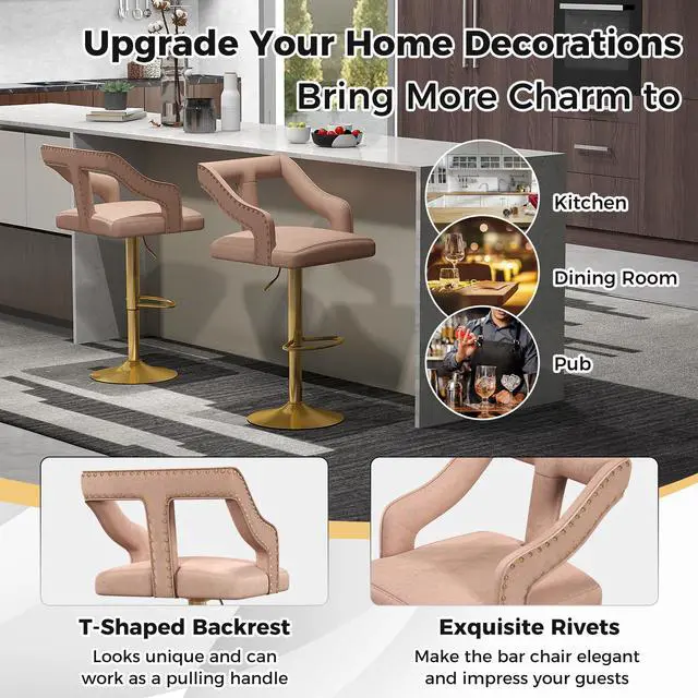 Luxurious Comfort: Upholstered in comfy dutch velvet and generously padded with soft sponge, each bar chair offers both comfort and durability. Besides, it comes with a T-shaped backrest and a wide seat, creating a luxurious sitting experience.