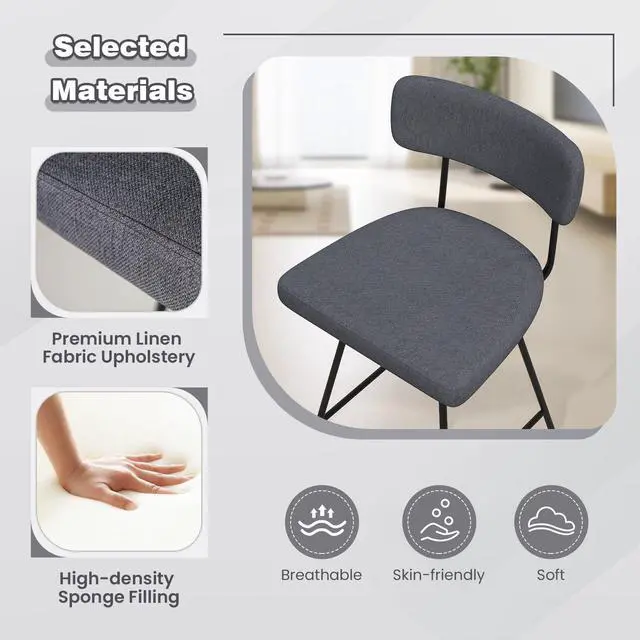 Breathable and skin-friendly linen fabric upholstery for enhanced comfort.