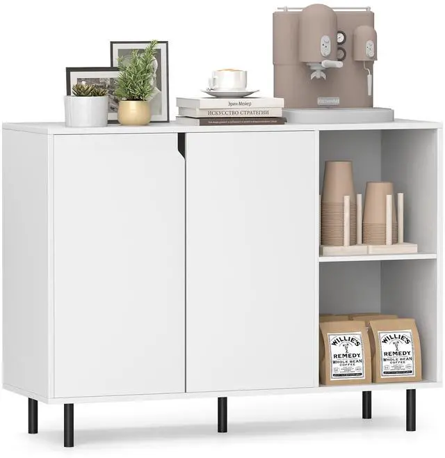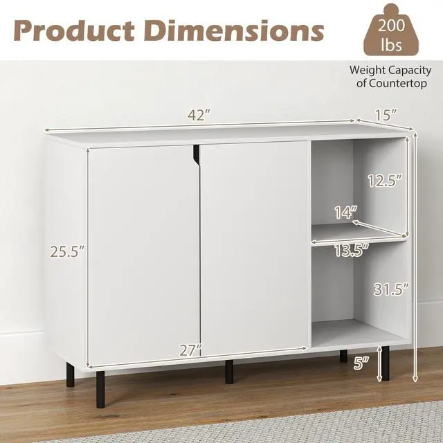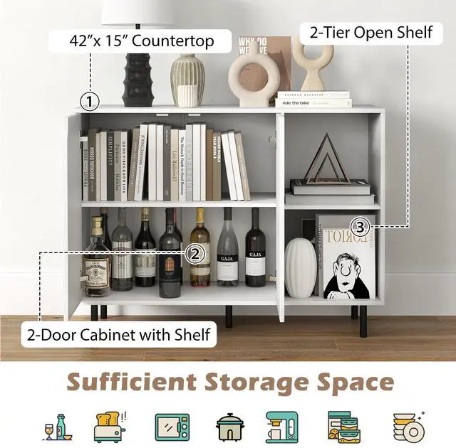 Sufficient Storage Space: This functional buffet sideboard features a 42 x 15 countertop, 2-door cabinet with shelf and 2-tier open shelf. With ample storage space, the storage cabinet is perfect for organizing dinnerware, meals and so on.