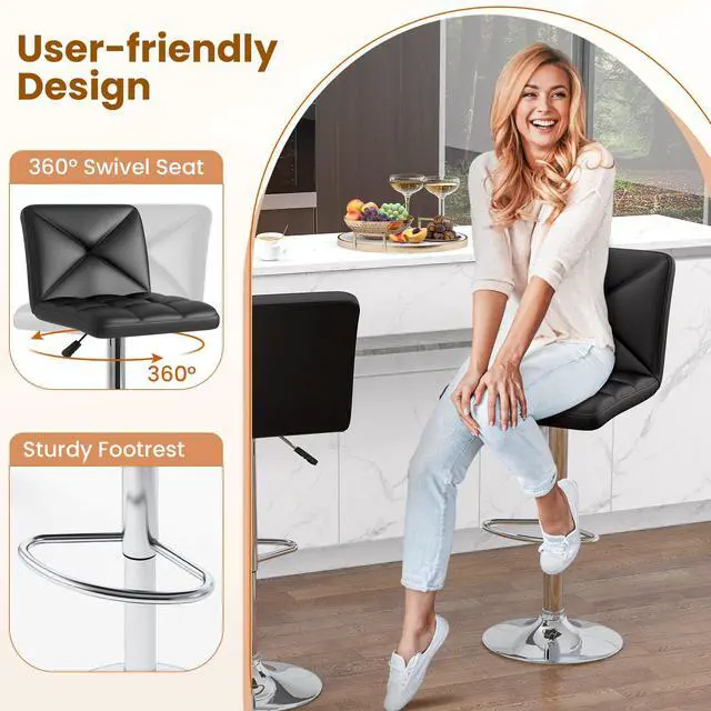 Versatile Swivel and Height Adjustment: This modern bar stool set offers a 360° swivel feature, allowing for easy rotation and movement. The 25"-33.5" adjustable height ensures that the stools can be customized to fit various counter and bar heights, providing optimal comfort and convenience.