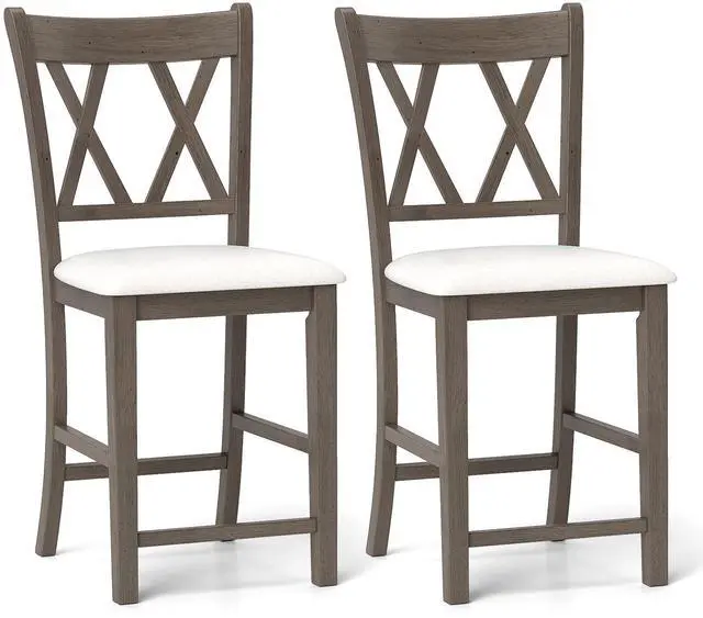 Classic Elegance: Elevate your interior decoration with these farmhouse stools that blend timeless elegance and modern charm. The sophisticated wood grain finish partnered with a stylish cross-shaped back creates a focal point in any room, complementing both contemporary and traditional interiors.