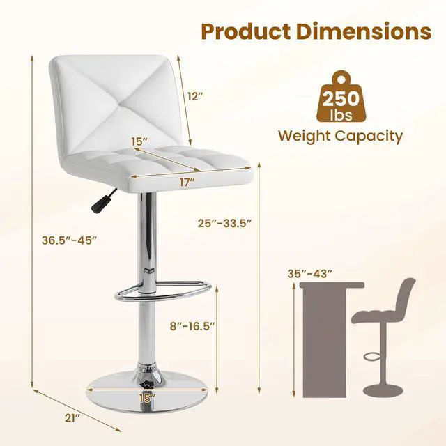 -25"-33.5" seat height matches most counters