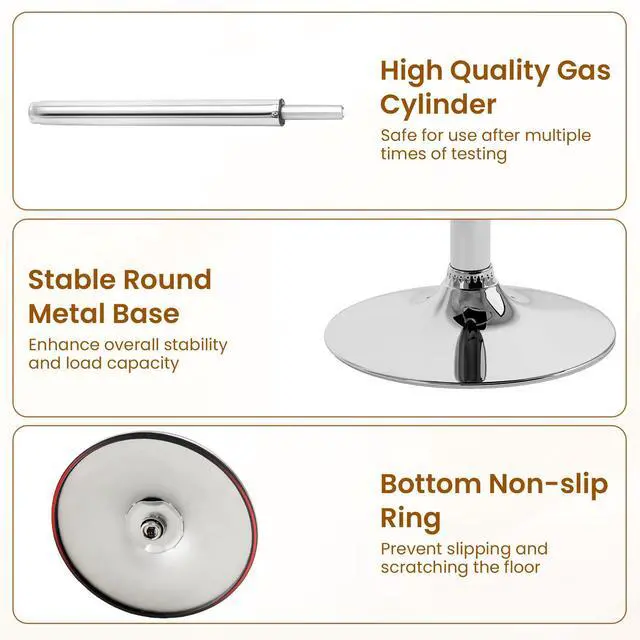 Robust and Stable Metal Base: The kitchen island stools feature a sturdy electroplated base that ensures stability and durability. The non-slip ring on the base adds an extra layer of safety by preventing the stool from slipping on smooth surfaces.