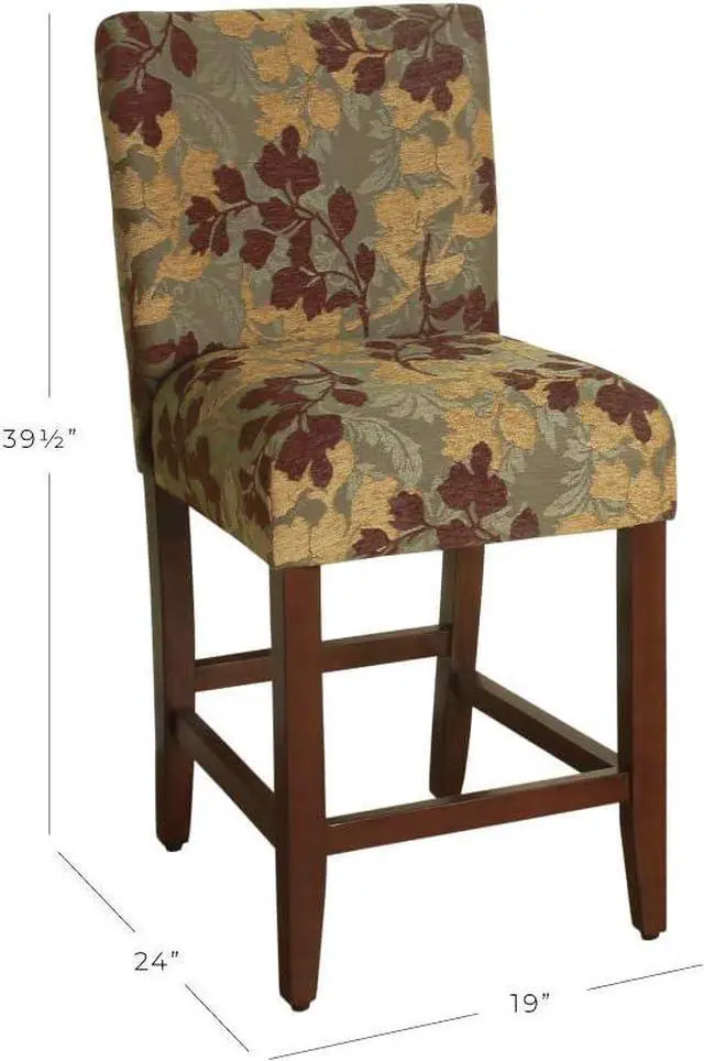 24 INCH BAR STOOLS: Our single upholstered chair counter stool features a timeless blue floral print with wood legs in a striking natural finish | Our counter height chairs support up to 250 lbs
