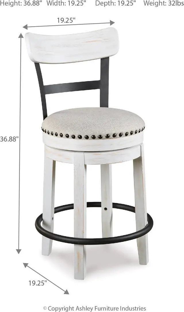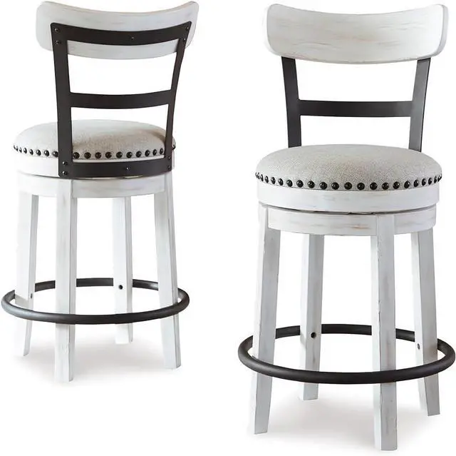 RUSTIC FLAIR: Distinctive features such as the neutral cushioned seat, swivel and nailhead trim all come together in a gorgeous vintage black and white finish to go with your rustic decor