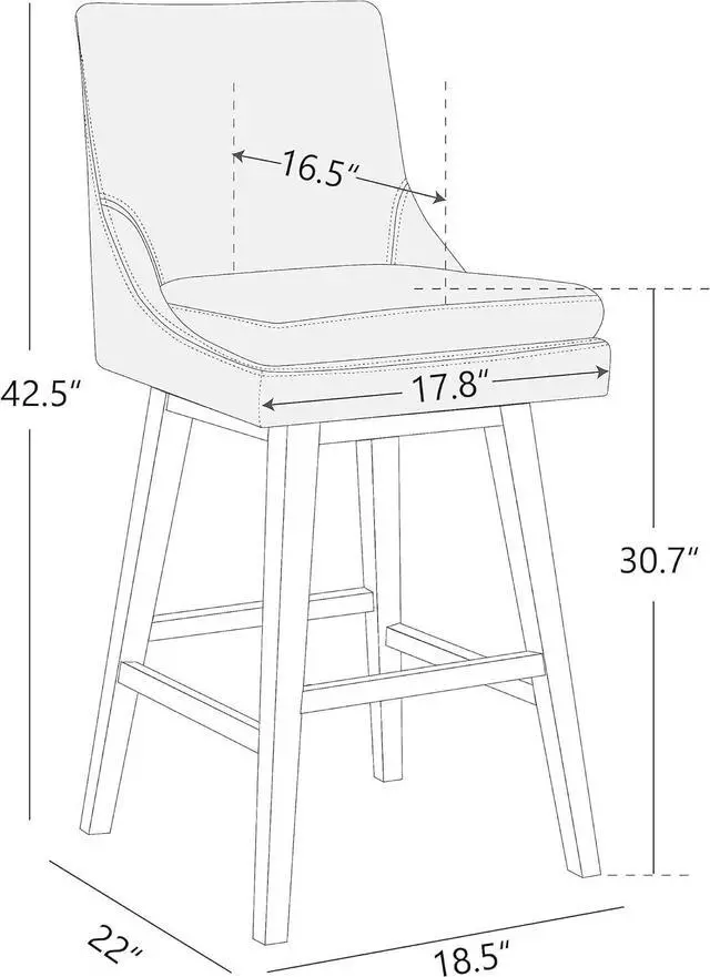 360-Degree Swivel Barstool: CHITA stylish and comfortable barstool is perfect for high-top tables and bars. With its seamless 360-degree swivel, you can effortlessly rotate the seat with your body' s movement. No need to move the entire chair when standing up.