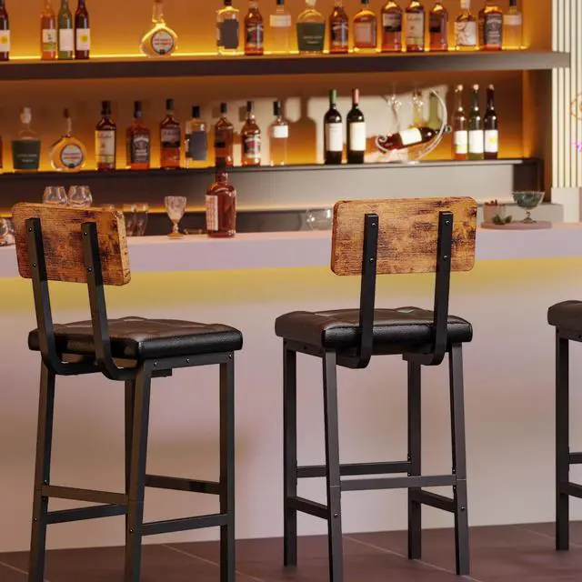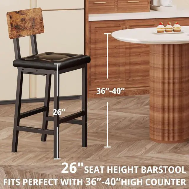 TRUSTED QUALITY: Features a high-grade material that includes a thick sponge cushion for comfortable seating and high-quality metal, PU leather seat that is easy to clean, and a sturdy construction for long-lasting use, this industrial upholstered bar stool is designed to withstand the test of time