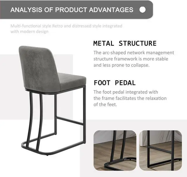 PU Leather: This bar stool is made of high quality faux leather material, with delicate texture, stain resistant and easy to take care of, you can wipe it with a damp cloth for maintenance.