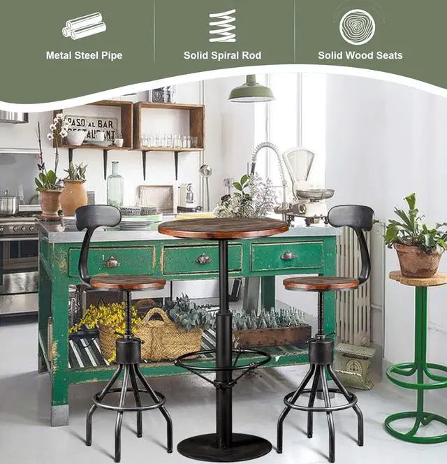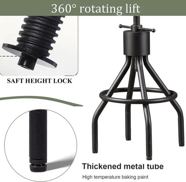 Height Adjustable from 23.4 inch to 29 inch, available both as kitchen counter height stool and bar height stool. Just by spin the seat after loosening the screws.