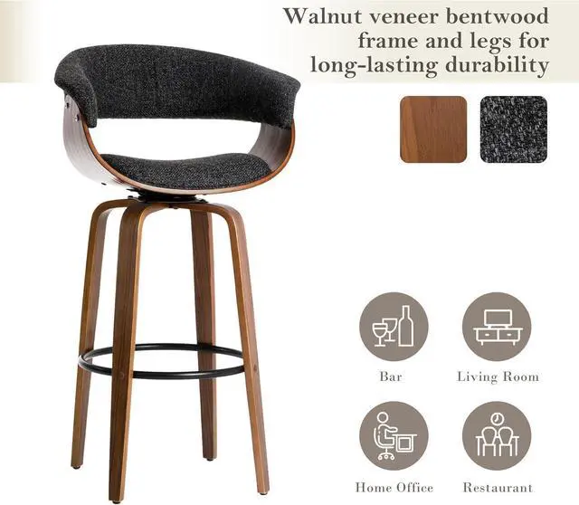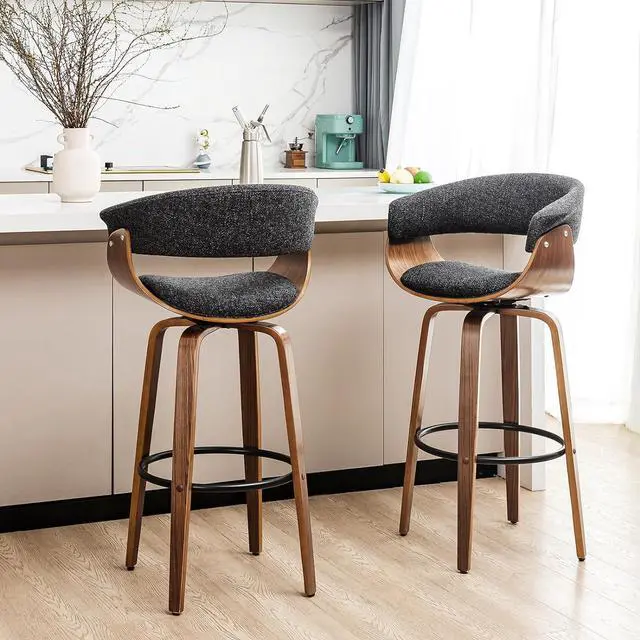 Sturdy and DurableRest assured about its durability and stability. The frame is crafted from natural walnut wood grain veneer, known for its high density and resistance to distortion, guaranteeing a long lifespan. The bar stool is also equipped with adjustable footpads, which keep the stool stand with great stability even on uneven ground.