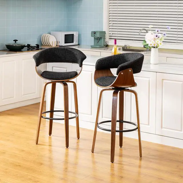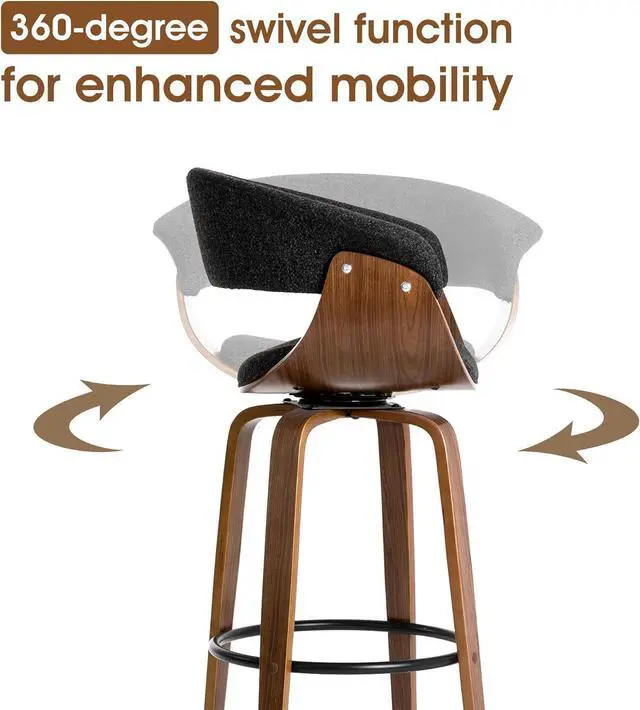 Free SwivelThe stool height from seat to floor is 29.5 inch, its perfect for the kitchen bar whose height is 40-43 inch; With its 360-degree swivel, you will have a full range of motion, allowing you to converse with friends in any direction, which is very convenient to use.