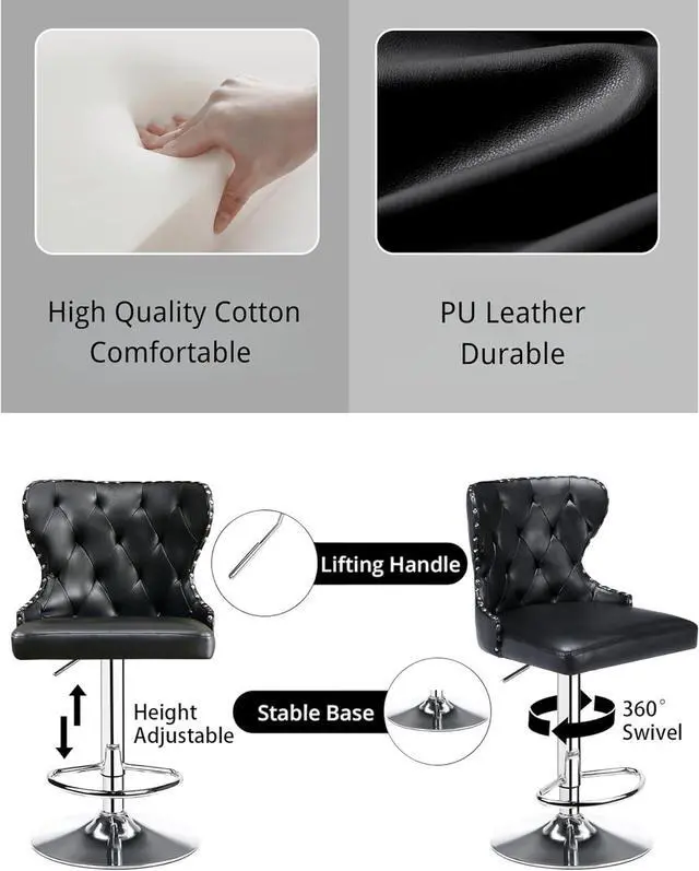 ADJUSTABLE HEIGHT AND SWIVEL FUNCTION: Adjustable height ranges from 21.7 to 29.5 inches for perfect fit; Smooth swivel allows effortless movement and interaction; Suitable for various counter heights, ideal for kitchen islands and home bars