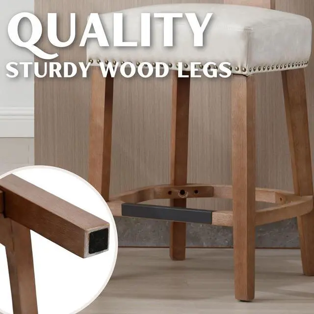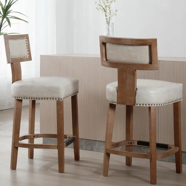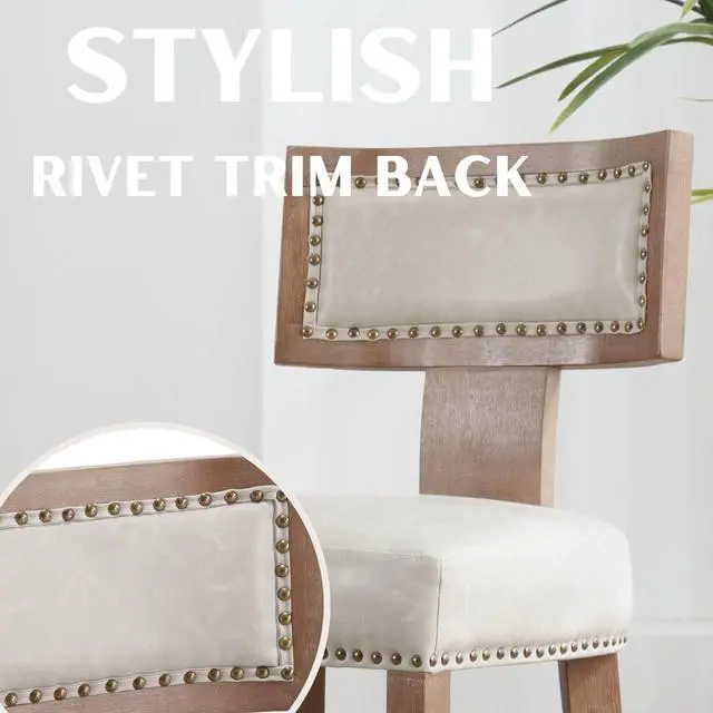 UNIQUE DESIGNThis package includes 2 counter chair. Numbers of decorative rivets are inlaid around the cushion and backrest, which looks more noble and elegant. Simple and elegant appearance for delivering a hint of fashion and eye-catching addition to your house, which can easily blend in with any decor.