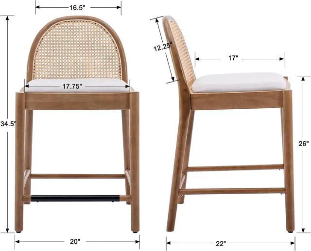 Mid Century Style: Arched rattan backrest add mid century country style to your home, create relaxed elegance for any space. The square padded seat cushion is linen or sherpa upholstered, adding modern appeal to your kitchen.
