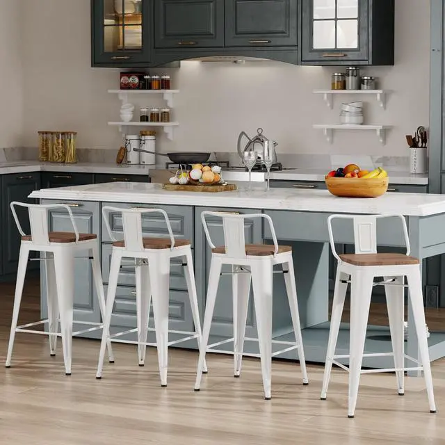 Bar Stools Set of 44 counter height metal bar stools. With detachable backest, it can be used as backless stools or stack for space saving when back off