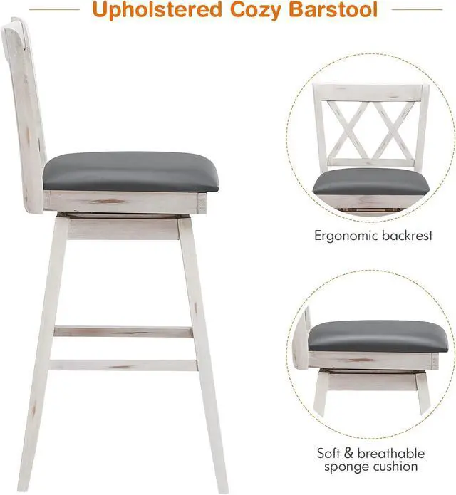 Convenience: ]Equipped with a swivel seat, the bar chair allows you and your guests to switch directions freely, which make conversation easier. The premium footrest is able to help you rest your legs and find the most comfortable sitting position.