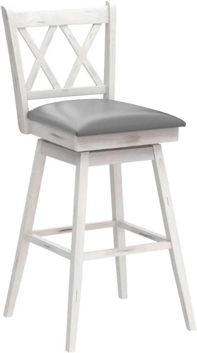[Durable & Sturdy Construction: ]The bar stool is made of high quality rubber wood with a contoured X-back frame, making it superior in stability and durability. And it can hold up to264 lbs. Also, the solid leg keeps it stable without shaking.