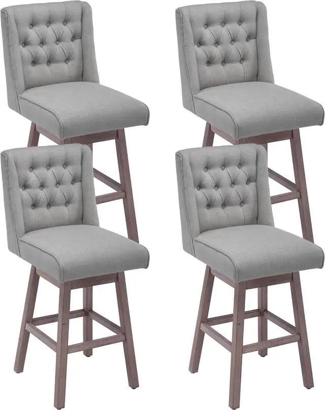 Stable & Sturdy Structure: The weight capacity of bar stool is 350 lbs. High-quality solid wood legs are dried and treated to be strong and durable, not perishable, extending their service life. Equipped with foot pegs to prevent scratching the floor.