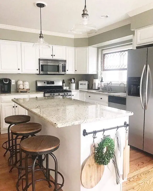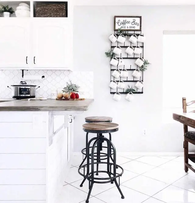 SWIVEL BAR STOOLS: Visually striking with its two tone finish, these bar stools act as a piece of decor all their own. The convenient foot rest reinforces the rustic industrial trends