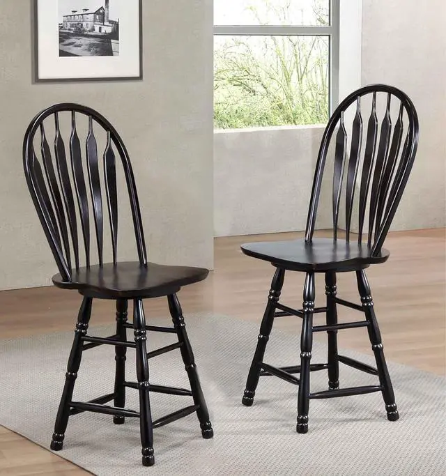 ERGONOMICALLY DESIGNED COMFORTABLE HIGH BACK STOOL - Arrowback spindles that are curved to conform with your back securely support the half-circle gently angled high backrest | Slightly scooped shield shaped seats allow you to relax comfortably for long periods of time
