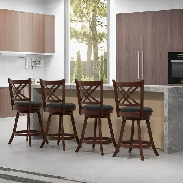 Swivel Barstools Set of 4]: These bar stools are designed with a 360-degree swivel, which allows you to freely turn to any direction you want. Whats more, the 4-piece chair set creates a cozy area for you to gather easily.
