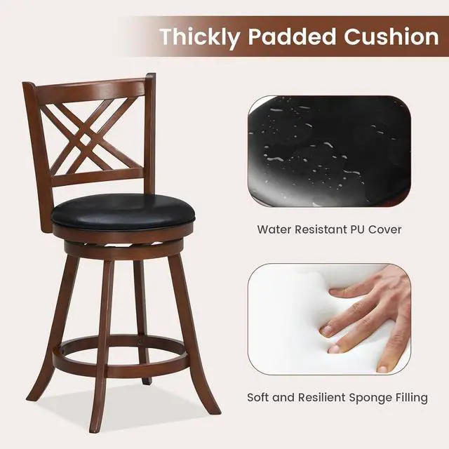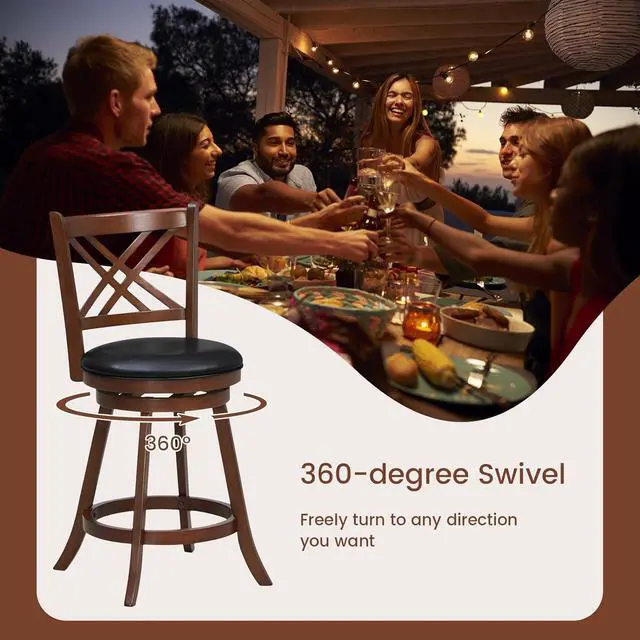 [Stable Rubber Wood Frame]: The swivel bar stools are framed by solid rubber wood that features long service time, stable performance and natural flair. As a result, these counter height chairs will serve you for many years.