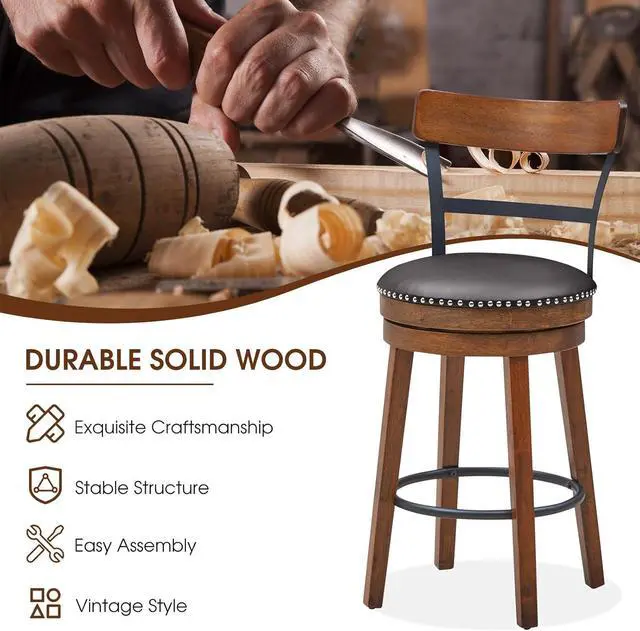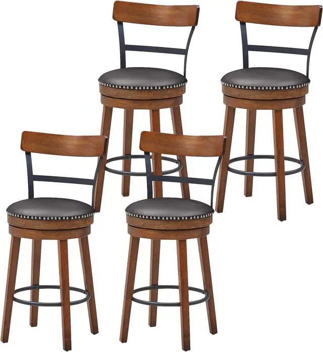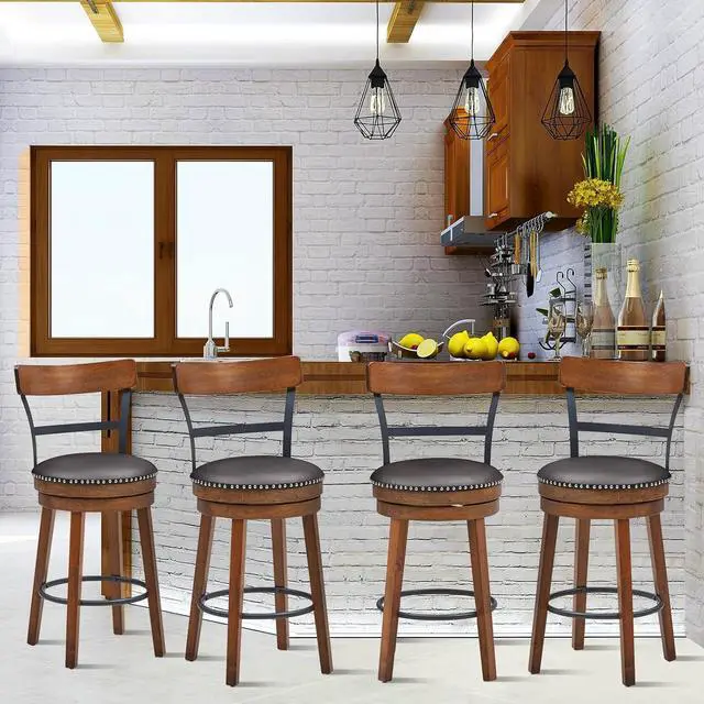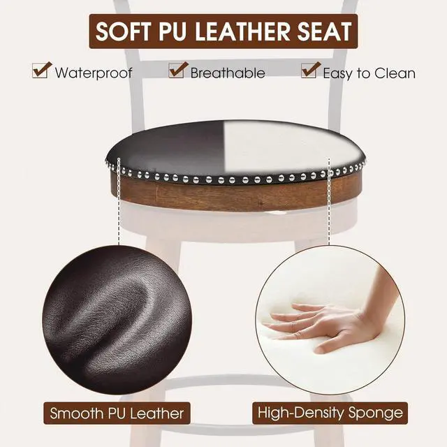 Soft PU Leather CushionPacked with high-density, resilient sponge, these cushions maintain their round and plump shape, resisting deformation over time. Adorned with easy-care brown PU leather upholstery, these bar stools elevate comfort to an entirely new level, making extended seating sessions a joy.
