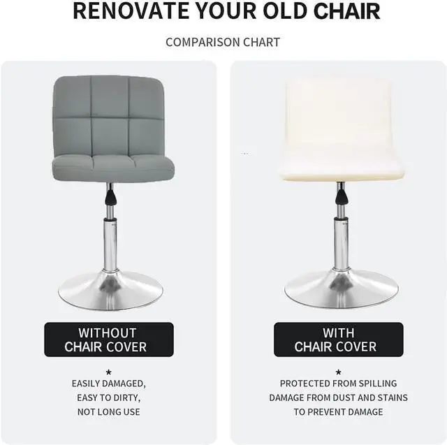 WATERPROOF MATERIAL. This short back chair slipcovers made of high quality pu leather. Due to the waterproof PU fabric, easily protect your chair from scratch and most spills.