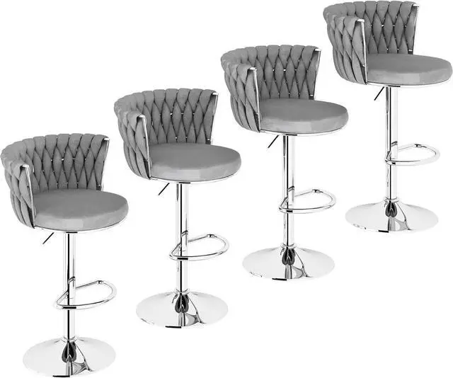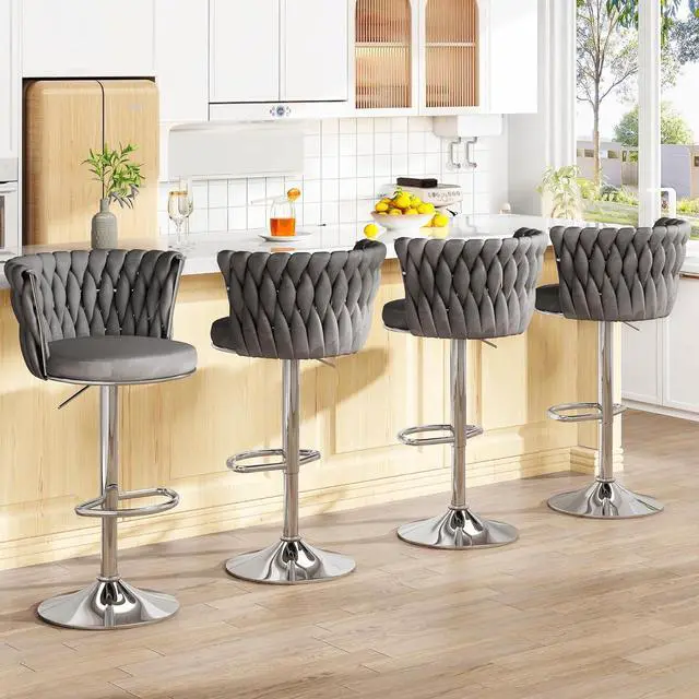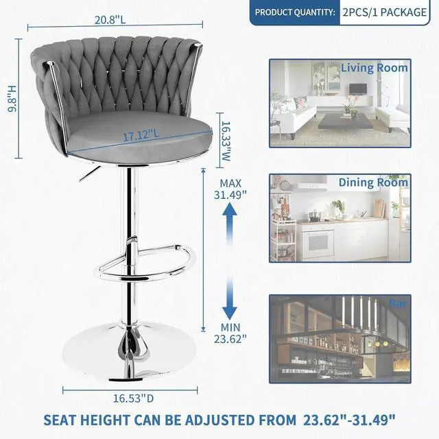 VELVET SWIVEL BARSTOOLS SET- Our bar stool seat is made of soft and skin-friendly velvet material and heavy-duty chrome, and filled with high-resilience sponge, thickened and widened seat cushion and backrest, so you can sit for a long time without getting tired! and the Rubber feet prevent the chair from skidding loudly or creating marks on your floor.