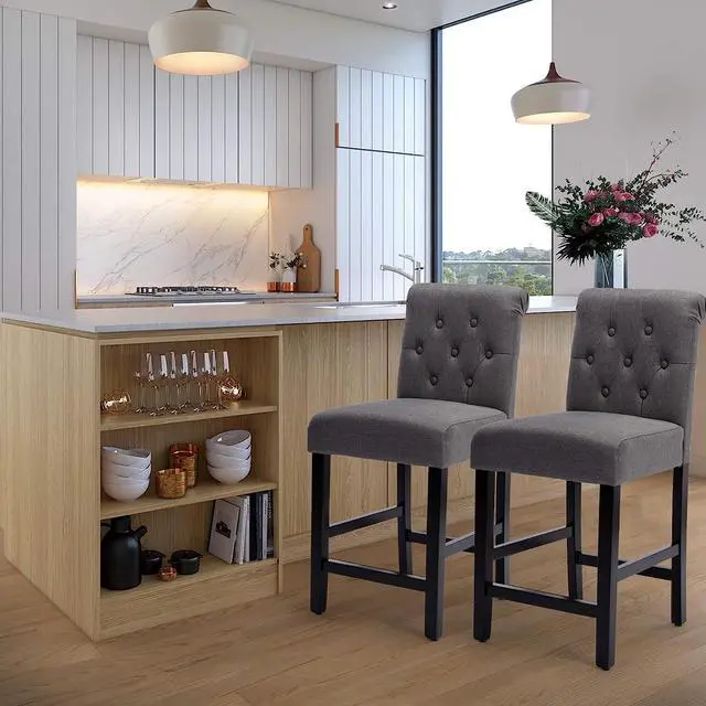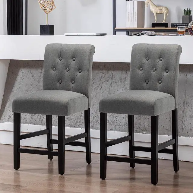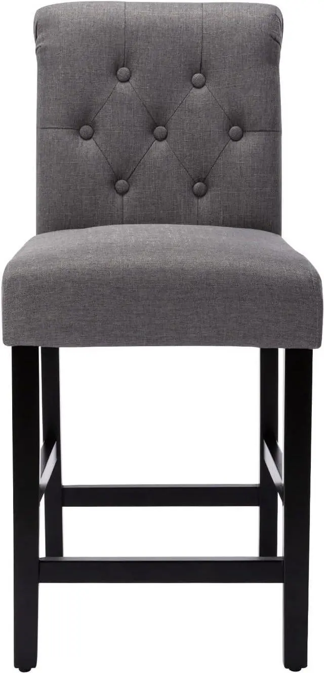 Durable fabric: The whole counter height chairs fabric is made of comfortable slub linen fabric, the dark color design is never out of date, the buttons are classic style, can follow any trend