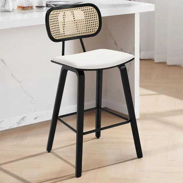 Ergonomic Wicker Bar ChairOur wooden barstools features a curved rattan woven backrest that conforms to the natural curvature of your back, providing excellent support. Filled with high-resilience foam evenly distributed throughout the seat surface, ensures a long-lasting sitting experience without the worry of sagging or discomfort, effectively relieving fatigue accumulated throughout the day. Designed with a square footrest, which helps alleviate pressure on the knee joints when sitting.