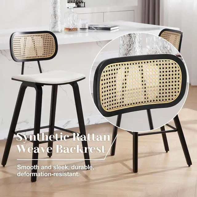 Comfy Breathable Rattan BarstoolOur counter height bar stool features the trendy and popular element of rattan weaving. The simulated rattan material is meticulously hand-woven into an octagonal mesh fabric which allows for optimal airflow, keeping cool and comfortable even during extended periods of use. Not only offers the appearance of real rattan but proves enhanced smoothness, durability, deformation resistance, and breathability.