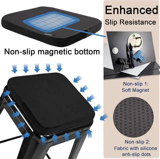 MAGNETIC & ANTI-SLIPTired of cold, hard metal seats? Try this comfortable cushion. Especially suitable for iron chairs, which can be directly attached to the chair surface. We can also use it on wooden chair surfaces, and the silicone non-slip bottom can make the cushion and chair surface stick firmly.