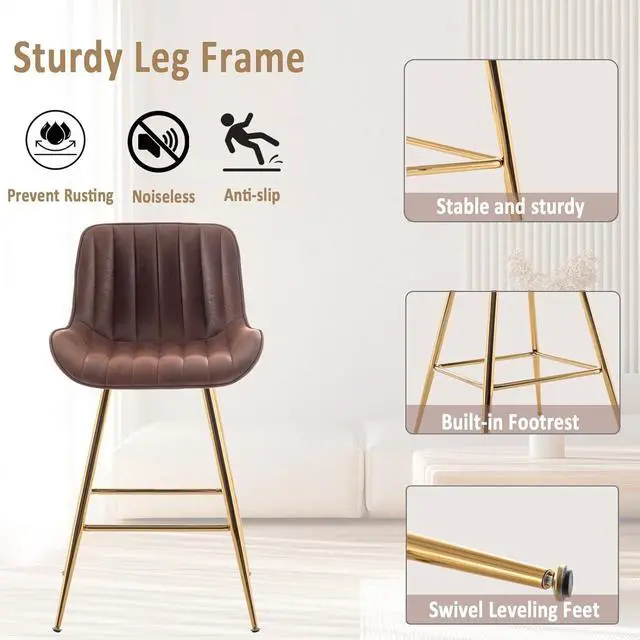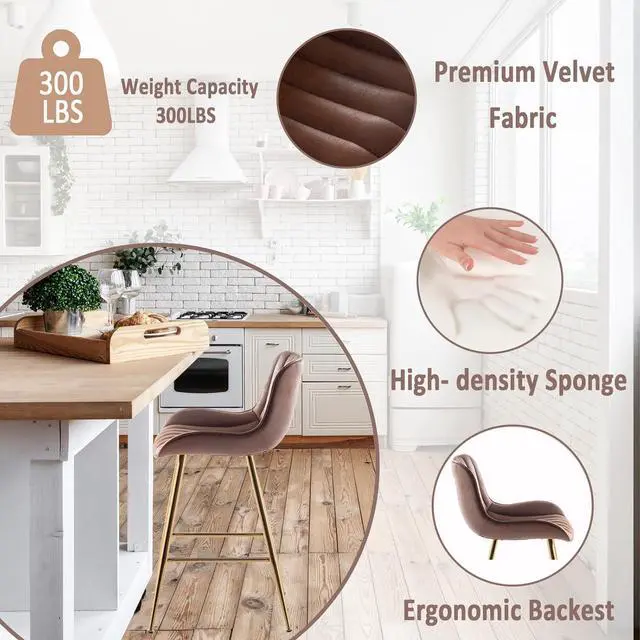 Designed for comfort, these brown velvet chairs feature high-density foam cushions, providing exceptional support for long periods of sitting. Perfect as counter height bar stools set of 2, brown and gold barstools, velvet bar stools for dining, working, or relaxing