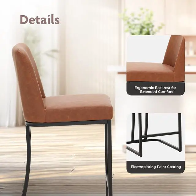 Durable & ComfyThe dining chair is made of high quality PU leather sponge material, resistant to dirty, easy to clean, sturdy, durable and spill friendly, the well made metal frame provide good support to your body